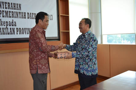 BENGKALIS- Bupati Bengkalis Herliyan Saleh menyerahkan Laporan Keuangan Tahun Anggaran 2013 ke Badan Pemeriksa Keuangan (BPK) RI Perwakilan Riau, Jumat (28/3/14). Saat penyerahan ini, Bupati didampingi Sekretaris Daerah Burhanuddin dsampaikan ke Kepala BPK Riau Widiyatmantoro.…...