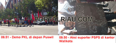 PEKANBARU, PORTALRIAU.COM - dua aksi demo macetkan arus lalulintas di jalan Sudirman, puluhan kendaraan harus berbalik arah di depan toko Gramedia, aksi demo terdiri dari dua kelompok.pertama rombongan Supporter PSPS Pekanbaru yang meminta dukungan Pemko…...