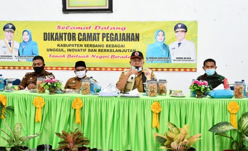 Monitoring dan Evaluasi BLT Dana Desa dan Bantuan Sosial Lainnya di Kabupaten Sergai.Pukul : 13.00 WIB,Tempat : Kantor Camat Pegajahan,Kecamatan Pegajahan. Hadir : Bupati Sergai Ir H Soekirman,Dandim 0204/DS Letkol Kav Syamsul Arifin,Wabup H.…...