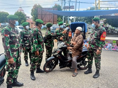 KAMPAR, Dalam rangka Penegakan Disiplin masyarakat, Babinsa Koramil 07/Kampar jajaran Kodim 0313/Kpr yang dipimpin Serma Supriadi bersama dinas kesehatan menerapkan protokol kesehatan mencegah penyebaran Covid-19 di Pasar Tradisional Air Tiris, Kecamatan Kampar, Kabupaten Kampar, Selasa…...
