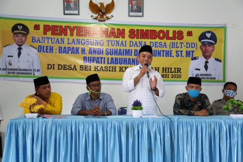 Labuhanbatu.portalriau.com.Bupati Labuhanbatu H.Andi Suhaimi Dalimunthe ST.MT, Menyerahkan langsung secara simbolis bantuan langsung tunai dana desa (BLT.DD) kepada masyarakat desa sei kasih Kamis (21/5/2020) di aula desa Sei Kasih Kecamatan Bilahilir Kabupaten Labuhanbatu. "Sedikitnya…...