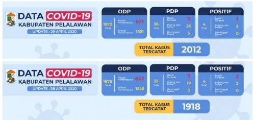 Portalriau.com.Pangkalan Kerinci, Data yang di himpun pertanggal 28 April 2020 total kasus tercatat 1918, Dan data pantauan Covid-19 Kabupaten Pelalawan update pertanggal 29/04/2020 dari Dinas Kesehatan Kabupaten Pelalawan tercatat 2012 kasus. Dari 2012 Kasus…...