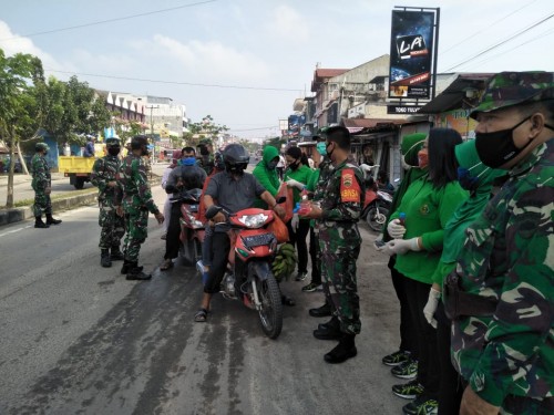 Duri- portalriau.com-Guna memutus mata rantai penyebaran Corona virus desease ( covid 19) jajaran Koramil 04 Mandau bersama Babinsa dan Ketua Percit Kartika Chandra Kirana Ranting Koramil 04 Mandau melaksanakan kegiatan sosial berupa pembagian masker dan…...