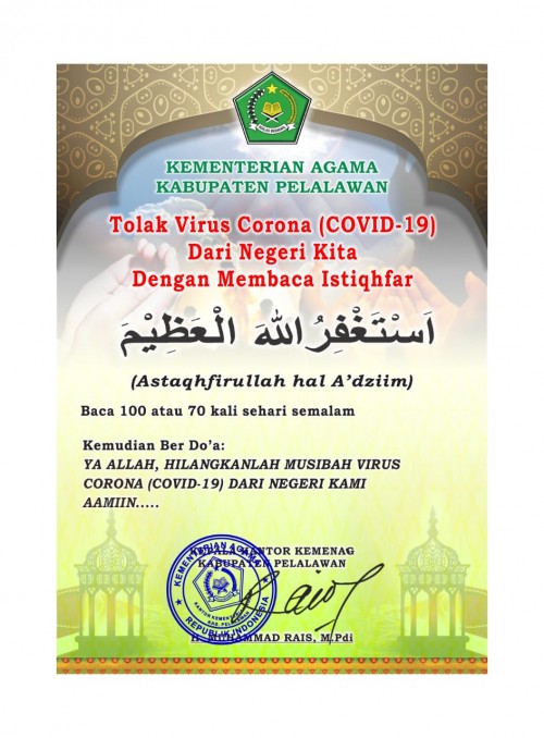 Portalriau.com-Pelalawan. Dalam upaya tolak-bala mencegah penyebaran wabah Corona Virus Desease-19 (Covid-19) di Kabupaten Pelalawan, Kepala Kantor Kementerian Agama Kabupaten Pelalawan H. Muhammad Rais. M. PdI mengajak seluruh Umat Islam di Provinsi Riau umumnya, Kabupaten Pelalawan…...