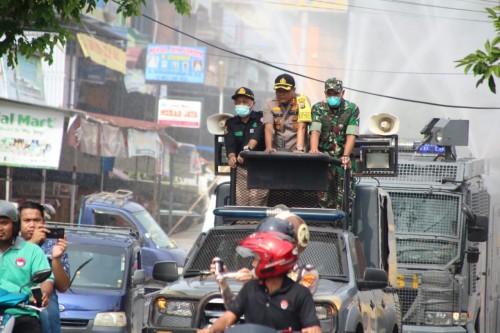 portalriau.com - KAMPAR - Jajaran Polres Kampar bersama Kodim 0313/ KPR dan Pemkab Kampar Lakukan Gerakan Bersama Memutus Penyebaran Covid-19, melalui penyemprotan Desinfektan secara serentak dan masif di wilayah Kabupaten Kampar pada Selasa pagi (31/3/2020).…...