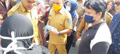 Labuhanbatu.portalriau.com, Bupati Labuhanbatu, H Andi Suhaimi Dalimunthe ST, MT didampingi Camat Rantau Selatan, H Azhar Rambe SE, dan Lurah Sioldengan M Yusuf Harahap SE membagikan masker dan Sanitizer di jalan Dewi Sartika Rantauprapat, Selasa…...