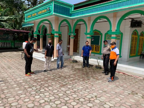 Labuhanbatu.portalriau.com.Tindak lanjuti arahan Bupati Labuhanbatu H. Andi Suhaimi Dalimunthe ST, MT, Kepala Desa Kampung Bilah Kecamatan Negeri Lama Junaidi Lubis bersama Forkopimdes dan BPBD lakukan penyemprotan disinfektan ke rumah ibadah dan fasilitas umum, dan…...