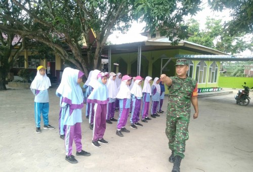 Portal Riau.com-pangkalan Kerinci.intara Pembina Desa (Babinsa) Koramil 09/lgm Kodim 0313/Kpr Serda Imron budi C memberikan pelatihan Peraturan Baris Berbaris (PBB) kepada para siswa tingkat Sekolah Dasar (SD), di halaman Sekolah Dasar Negeri 009 Terusan Baru,…...