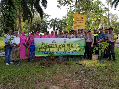 BENGKALIS, - Guna terlaksananya progam kegiatan Polri Perduli Penghijauan, Kapolres Bengkalis AKBP Sigit Adiwuranto, SIK, MH. didampingi Wakapolres Kompol Kurnia Setyawan beserta Staf dan Bhayangkari Polres Bengkalis gelar giat penanaman pohon serentak/bersama di Mako Polres…...
