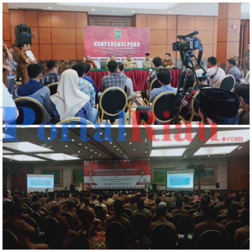 portalriau.com - Pekanbaru, Penyerahan secara simbolis Bantuan Keuangan (BanKeu) Khusus dari pemerintah Provinsi Riau Kepada Desa dan Kecamatan Se-kabupaten Kampar Provinsi Riau dalam Tema " Berdayakan Bumdes untuk memperkokoh Ekonomi Desa " yang diselenggarakan di…...