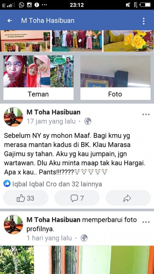 Portalriau.com, LABUHANBATU,Terkait dengan lima mantan Kepala Dusun, 1 orang anggota BPD (Badan Pemusyawaratan Desa) dan seorang warga yang merasa dirinya diduga difitnah Kepala Desa Bandar Kumbul Kabupaten Labuhanbatu, tampil postingan status di media sosial Facebook…...