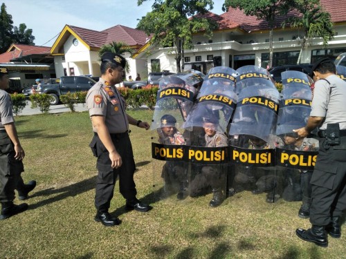 PELALAWAN.portalriau.com--Polres Pelalawan menggelar latihan rutin pengendalian masa (Dalmas) dalam rangka menghadapi pemilihan kepala daerah (Pilkada) serentak tahun 2018 ini, Senin pagi ( 22/1/2018) di Lapangan Mapolres Pelalawan. Latihan yang dipimpin langsung oleh Kasat Sabhara…...