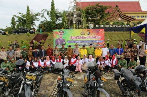 PELALAWAN.portalriau.com--Polri dan TNI bersinergi dalam mengamankan Pemilihan Umum Pilkada Riau Tahun 2018-2023 yang Kondusif dan Apel Gelar Pasukan di selenggarakan di Halaman Kantor Bupati Pelalawan, Jumat 05/01/2018. Upacara gelar pasukan di hadiri Wakil Bupati Pelalawan…...