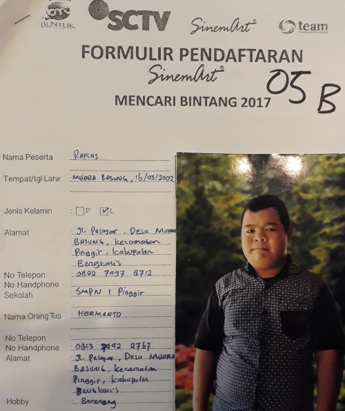 Ahad, 17 Desember 2017 - 11:16:04 WIBRaples mengisi formulir pendaftaran Sinemart mencari bintang Tahun 2017Raples sedang mengisi formulir pendaftaran Sinemart mencari bintang Tahun 2017 MEDAN (Portalriau.com ) - Raples Putra Desa Muara Basung pagi ini…...