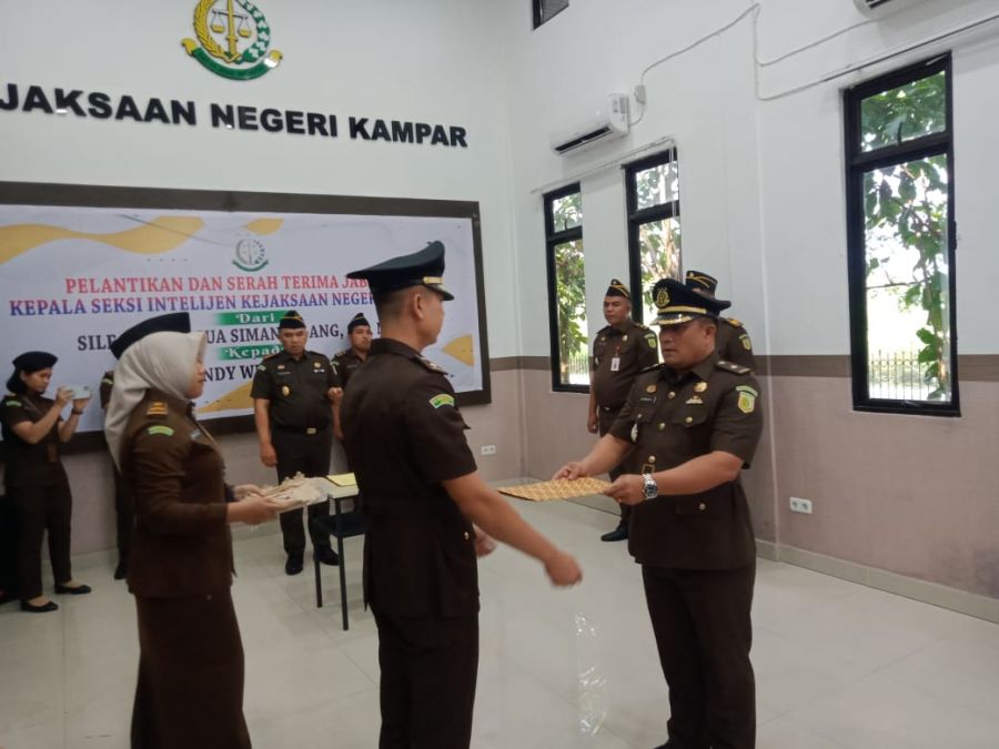 KAMPAR - Kejaksaan Negeri Kampar menggelar Pelantikan dan Serah Terima Jabatan (Sertijab) Kepala Seksi Intelijen (Kasi Intel) bertempat di aula setempat. Kajari Kampar, Arif Budiman memimpin langsung kegiatan sertijab tersebut dan diikuti beserta sejumlah jajarannya.…...