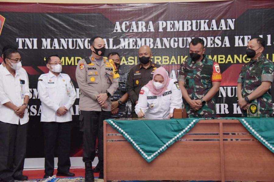 PORTALRIAU.COM- PINGGIR- Bupati Bengkalis Kasmarni membuka kegiatan TNI Manunggal Membangun Desa (TMMD) ke-113 tahun 2022, Kodim 0303 Bengkalis di Desa Muara Basung dan Desa Semunai Kecamatan Pinggir Rabu, 11 Mei 2022. Dipusatkan di gedung serbaguna…...