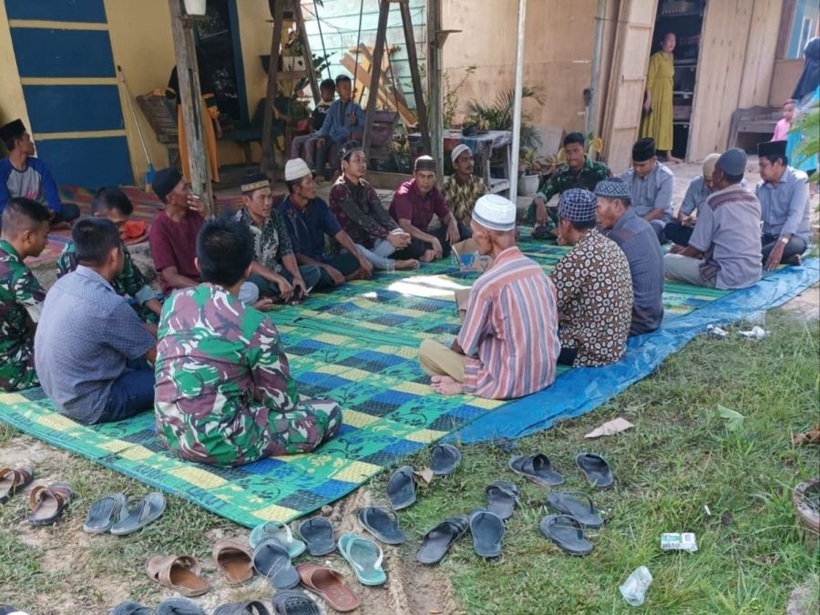 Portalriau com- Anggota Satgas TNI Manunggal Membangun Desa (TMMD) ke-113 Kodim 0303/Bengkalis takziah ke rumah salah seorang warga yang sedang mengalami musibah meninggal dunia di Jalan Banjaran, Dusun Sialang Rimbun, RT 01 RW 05, Pinggir.…...