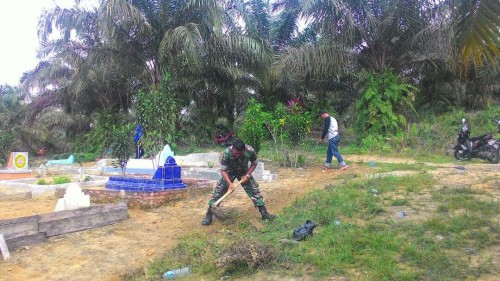 PORTALRIAU, Pangkalan Kerinci (29/05/2017) , Babinsa Desa Makmur KecamatanPangkalan Kerinci Serda Gunawan Rianto bersama Remaja Masjid, Mitra Babinsa dan Masyarakat sekitar membersihkan Tempat Pemakaman umum (TPU) yang berada di Desa Makmur, kegiatan ini rutin dilakukan…...