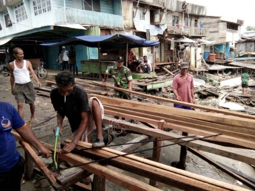 PORTAL RIAU, INHIL - Kuala Enok (24/5/17) – Babinsa Tanah Merah Koramil 02/TM Kodim 0314/Inhil Serda Payaman Siregar bergotong royong dengan masyarakat dalam usaha perbaikan atau rehap jembatan rusak yang menghubungan Desa Tanah Merah dengan…...
