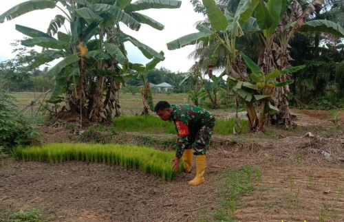 Portalriau.com-Pelalawan. Babinsa Kiyab Jaya Kopda Supriyanto Koramil 09/ lgm kodim 0313/ Kpr melaksanakan pendampingan dengan kelompok tani dalam penanaman bawang merah di Desa Kiab Jaya Kecamatan Seikijang Kabupaten Pelalawan.Senin(20/01/2020) Dalam kegiatan penanaman bawang merag…...
