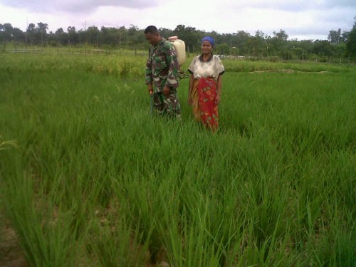 PORTAL RIAU/SUMUT, Kuansing (06/02/17) - Serda Heriyus.s selaku Babinsa Desa Pulau Sipan Kecamatan Inuman Bantu kelompok tani simangkako mengadakan penyemprotan untuk mengatasi hama padi yang berumur enam minggu, hama yang sudah mulai muncul…...